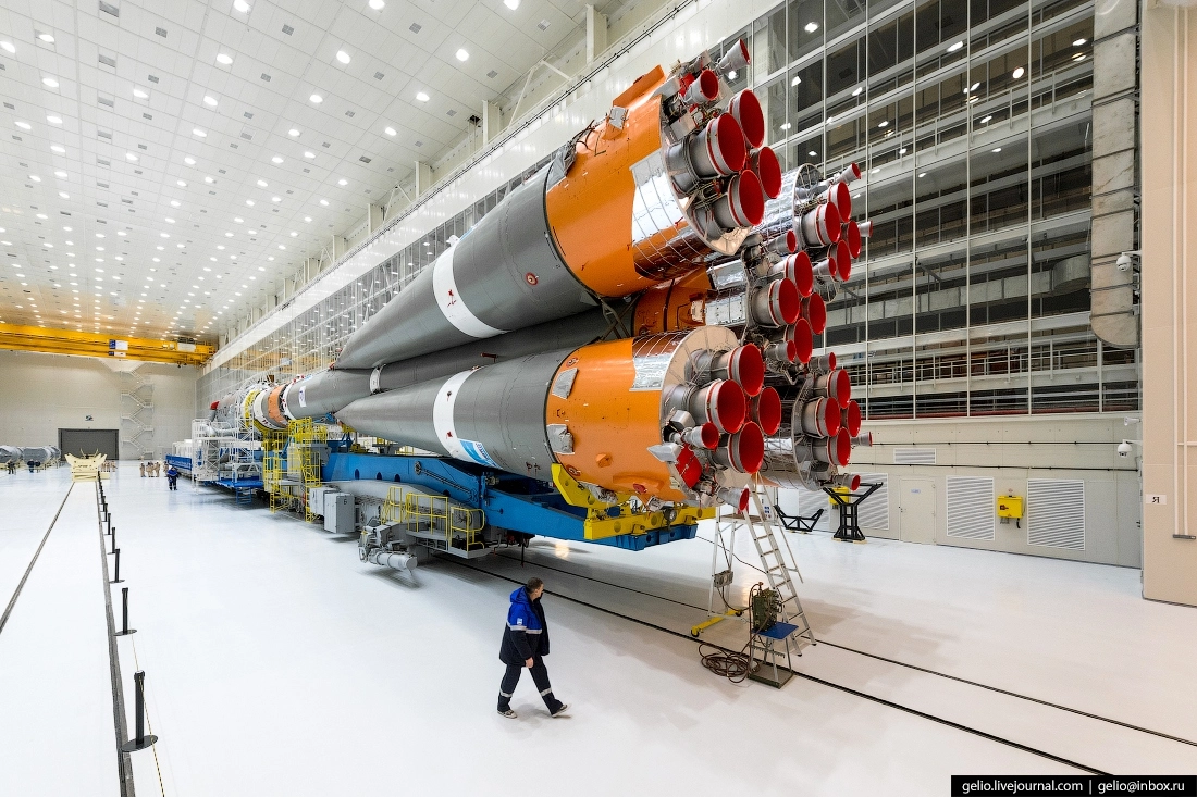 В дальней части МИКа видны детали другой ракеты — «Союз 2.1б». Её запуск запланирован на весну-лето 2019 года.