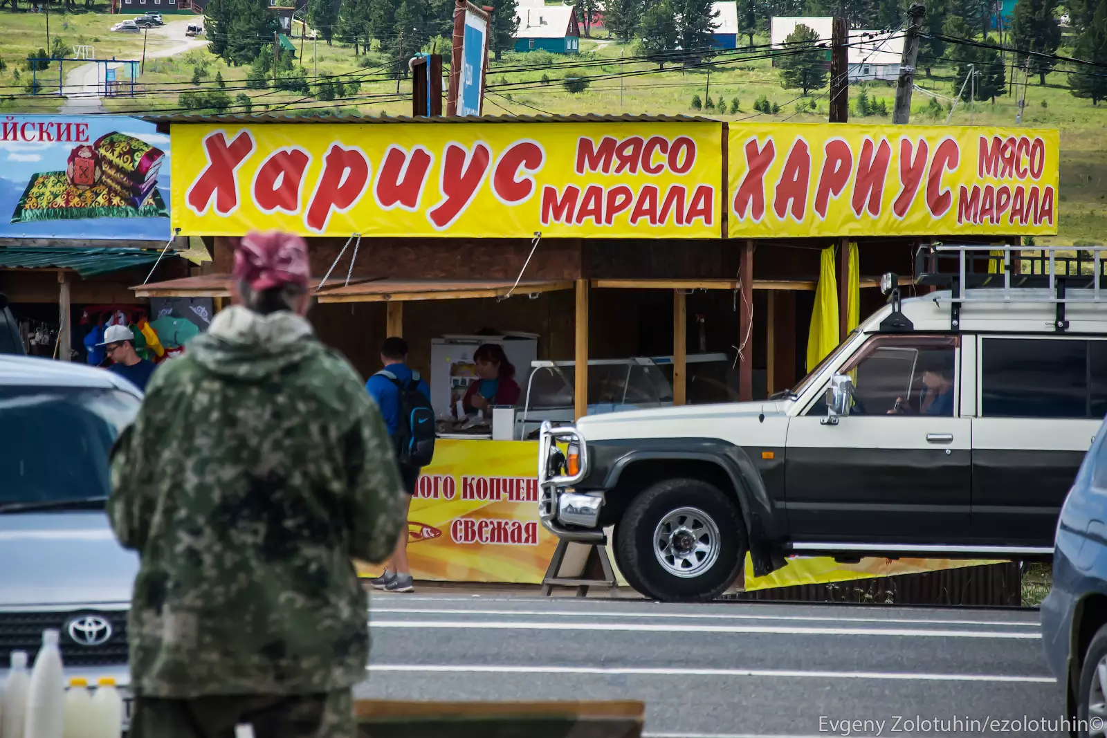В туристических местах на Алтае мясо марала продают на каждом шагу. Буквально. В каком-нибудь Чемале ты и трех метров не пройдешь, не уткнувшись в очередной плакат откуда-то из 90-х с «мясом марала». Фактически мяса маралов продают на Алтае больше, чем там есть самих маралов.