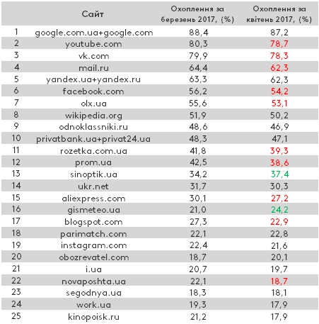 А вот свежий отчет TNS за апрель текущего года, согласно которому заблокированные сайты уверенно входили в топ-10 по посещаемости среди украинцев:
