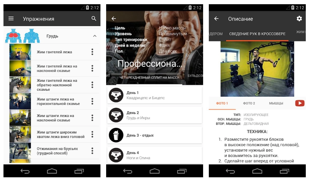 Приложение подойдет как новичкам, так и профессионалам. Для тех, кто только пришел в тренажерный зал (или вышел на спортплощадку) и не знает, с чего начать, есть огромная база продуманных и проработанных программ тренировок. Упражнения описаны ясно и предельно понятно, движения проиллюстрированы фотографиями и видео. С таким помощником вам не придет в голову использовать жим ногами для тренировки шеи. Хотя новых инновационных техник в приложении тоже хватает.
