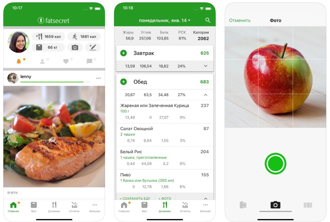 Fat Secret. Учет потребляемых калорий (Android и iOS)