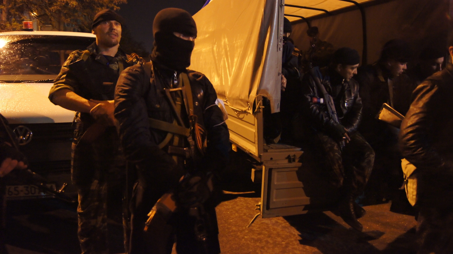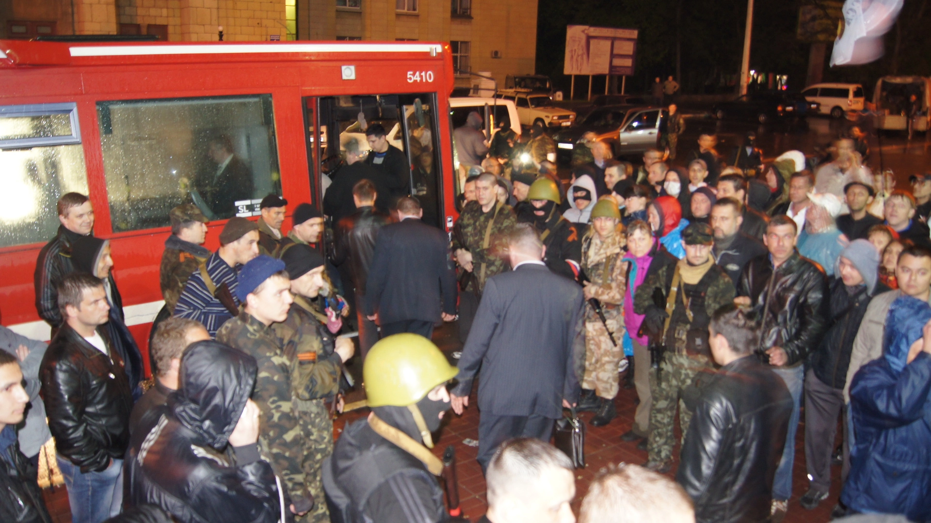 Грузились под грозные крики: "Позор!", радостные возгласы: "Россия!" и даже аплодисменты. Впрочем, людей в синей форме никто и пальцами не тронул. Но вооруженные ополченцы все равно оградили живой цепью выходивших из управления сотрудников...