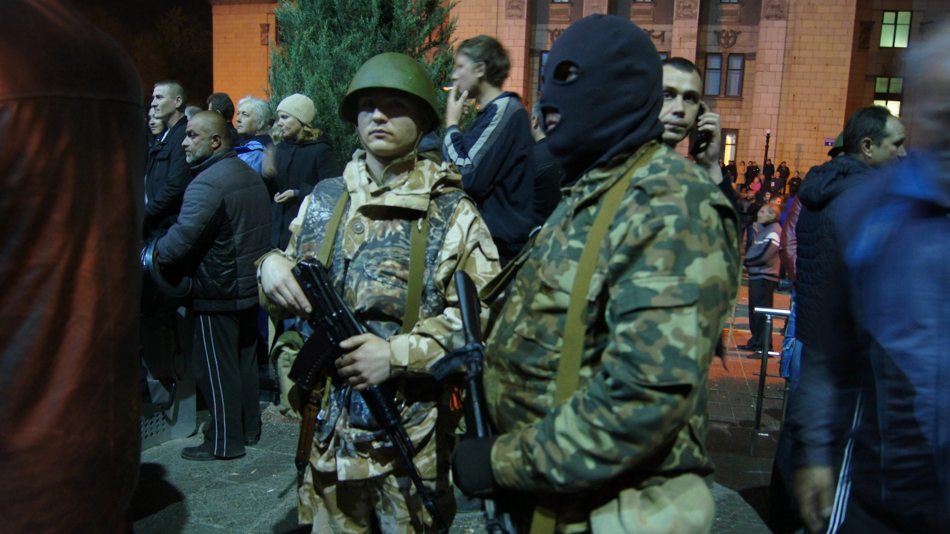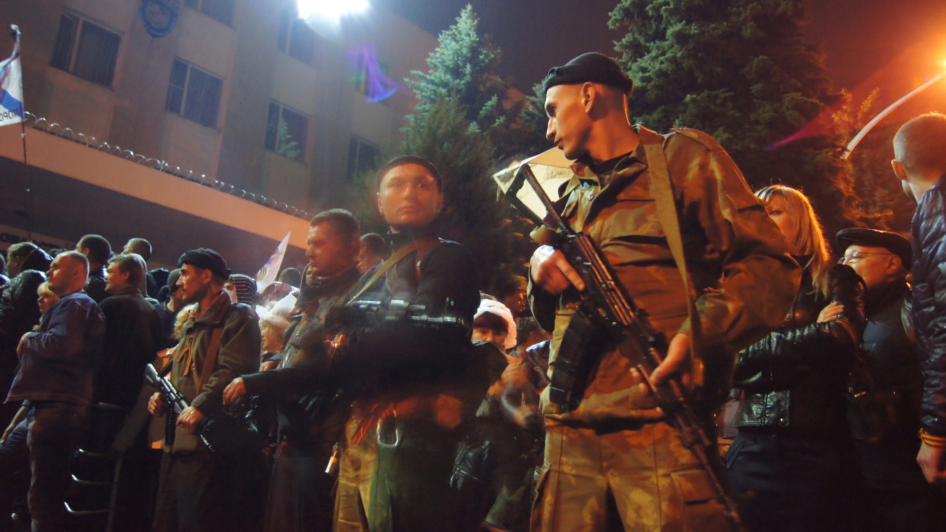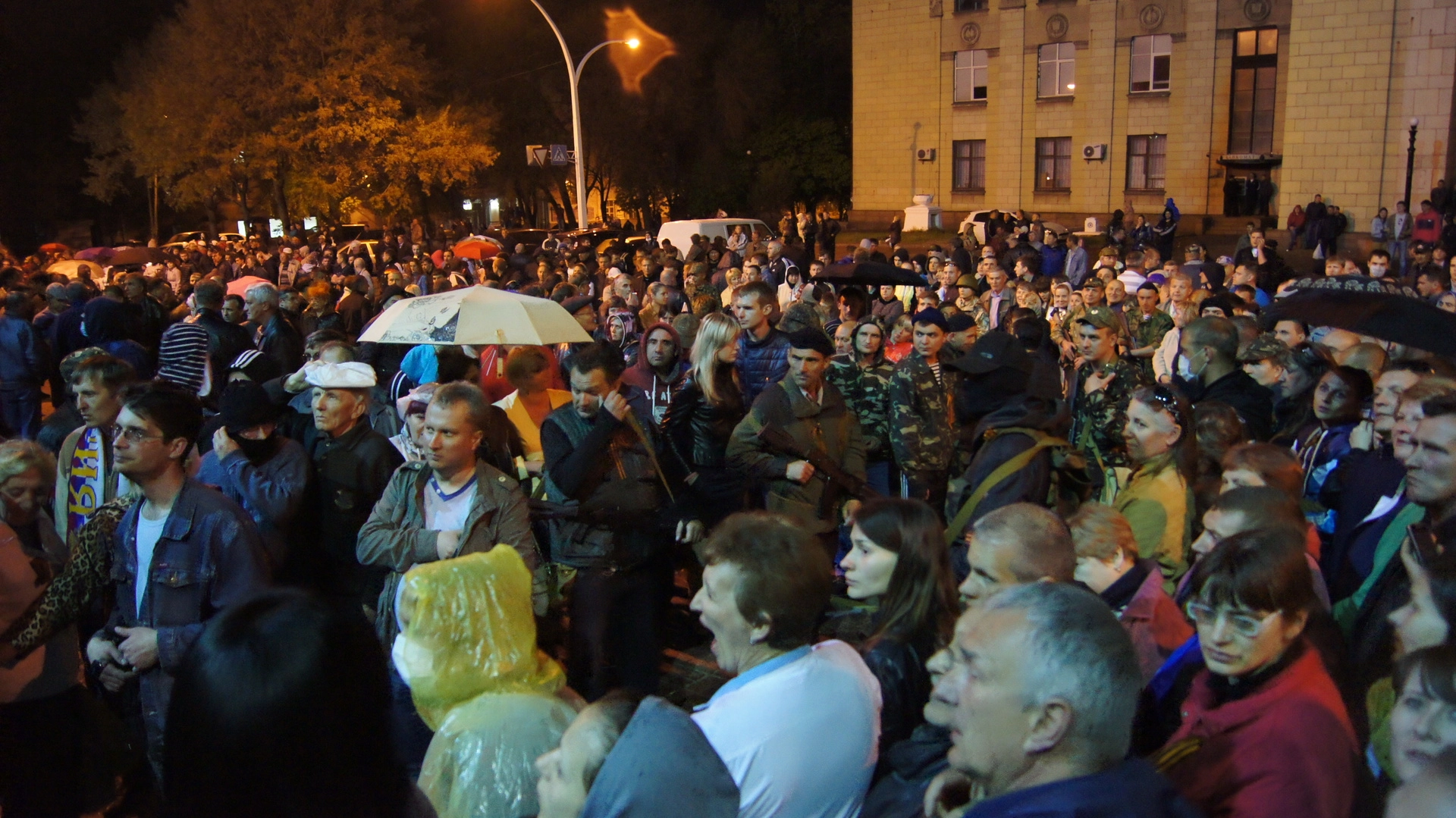 В ответ в них полетели светошумовые гранаты. Обратный ответ не заставил себя долго ждать: уже спустя полчаса возле комплекса милицейских зданий собралась нереальная толпа. «Нереальная, учитывая то, что почти одновременно с этой осадой в Луганске брали штурмом областную администрацию, прокуратуру, и загадочное здание с названием “Апелляционный суд”», - отмечает спецкор «комсомолки» Дмитрий Стешин, находившийся под окнами милицейского управления вместе с коллегой Сашей Коцем и нашим Краснощековым.