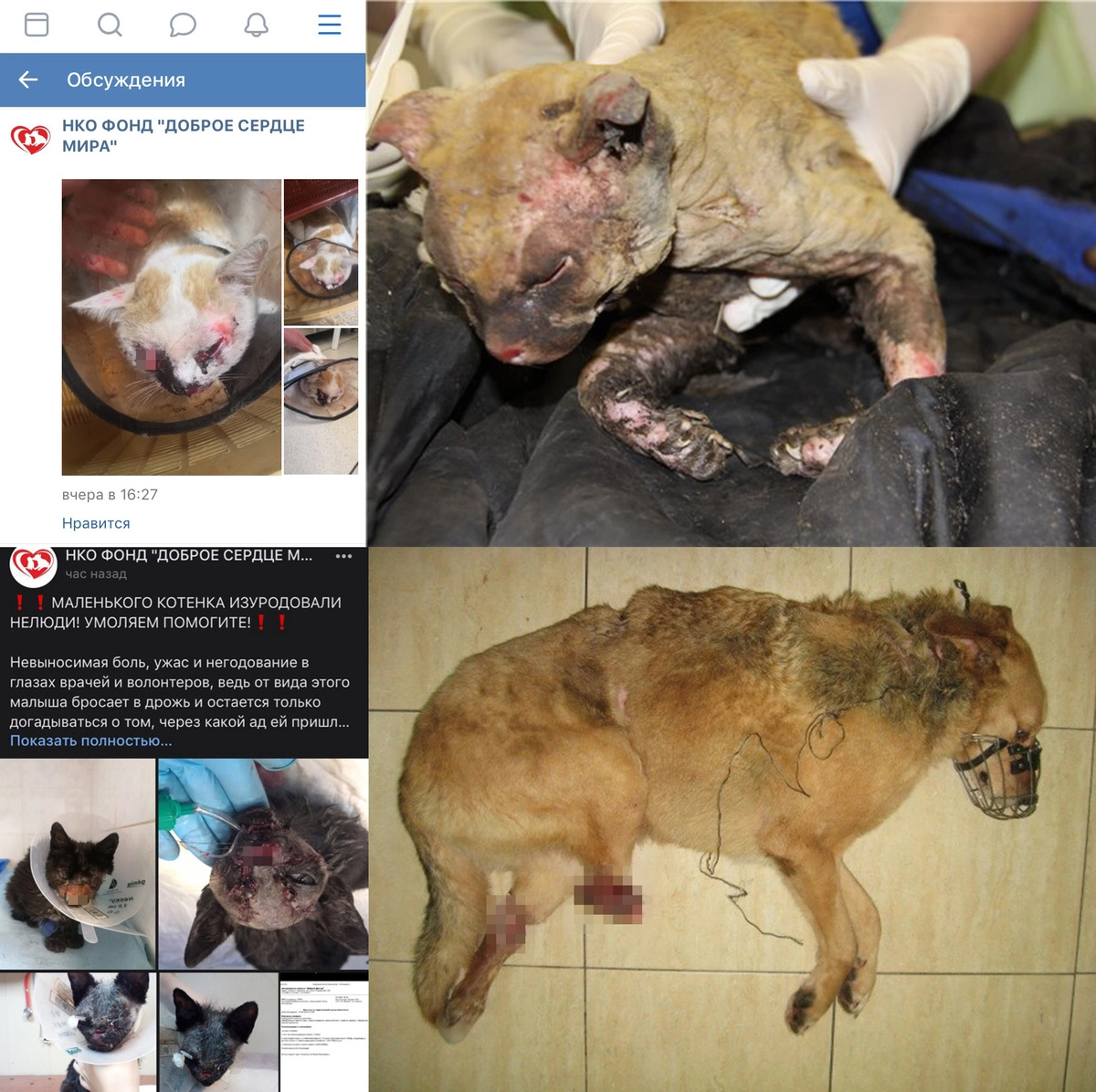 Так что в Сети можно легко найти фотографии животных с оторванными конечностями, тяжелейшими травмами и соматическими заболеваниями, которые, если по-хорошему, вообще-то — показания для усыпления. Разлагающиеся раковые опухоли тоже могут быть найдены в большом количестве. У меня есть похожие фотографии с „человеческих“ сборов, но там их появление было скорее жестом отчаяния, когда уже всем, и даже самому больному, понятно, что конец близок. А собачек выдают за живеньких, бодреньких и легко спасаемых, — уточняет собеседник «Ридуса».