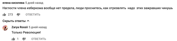 К примеру, угрозы и призывы к насилию звучат в комментариях к видеоролику Соболь: