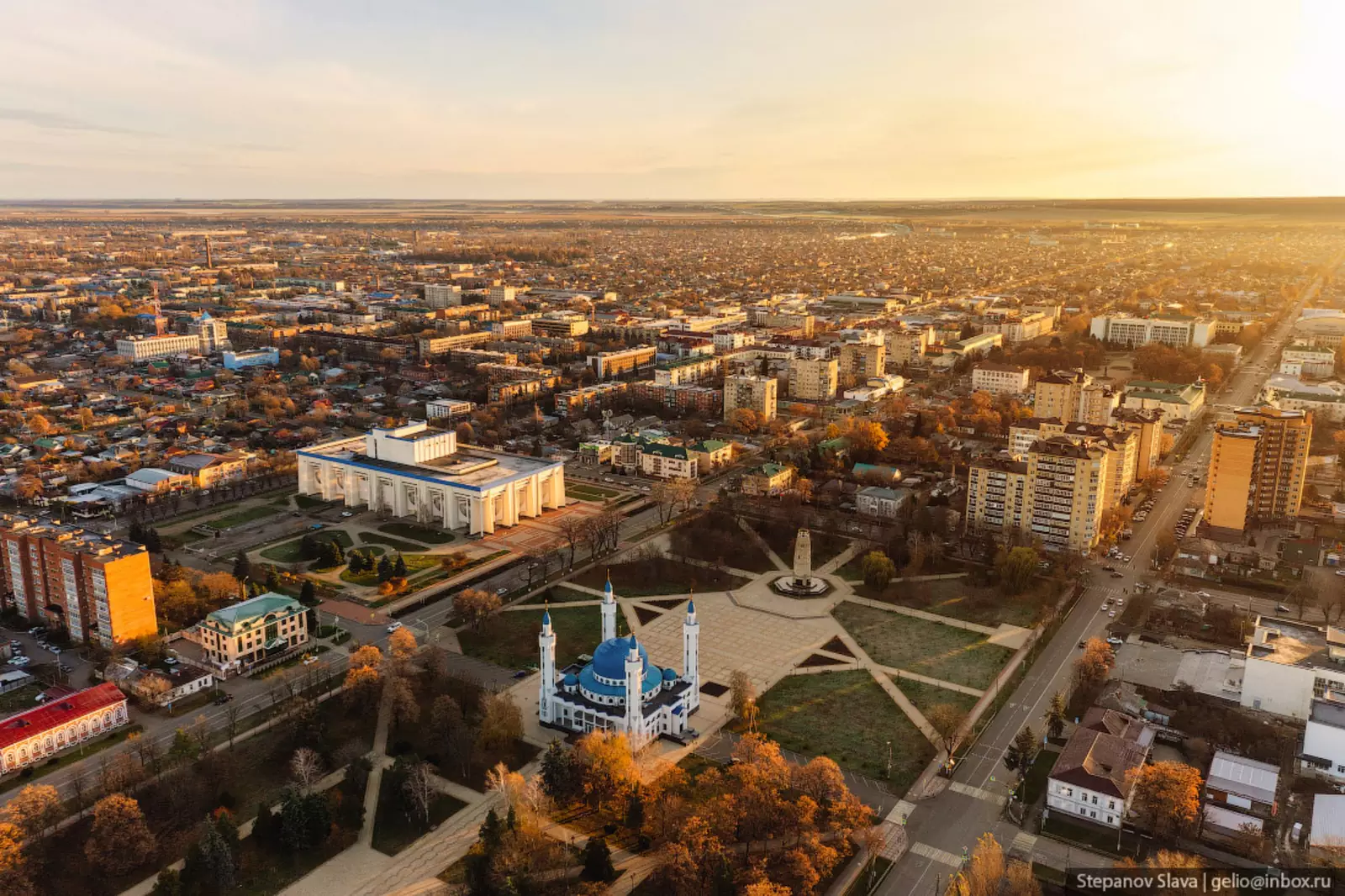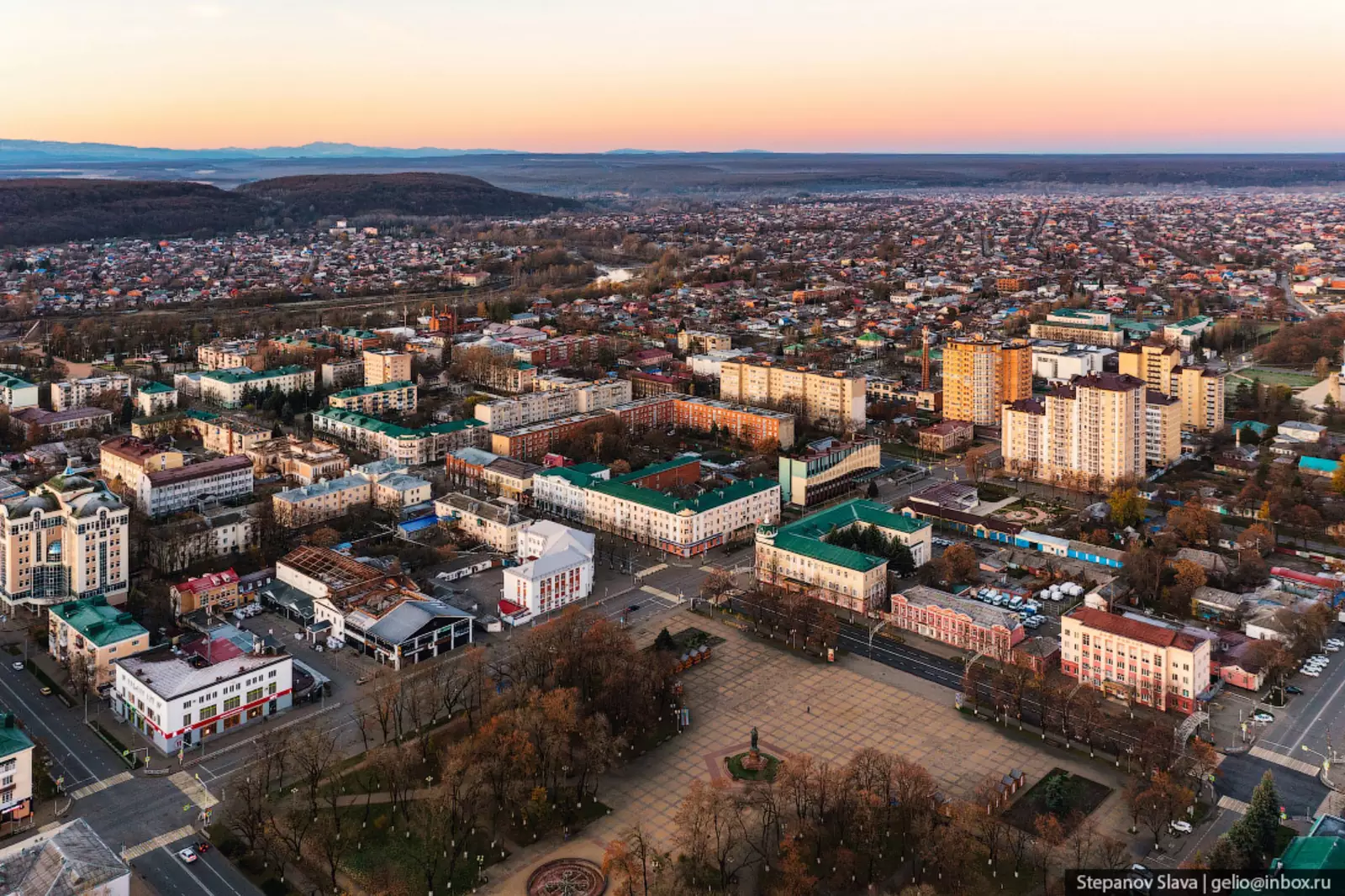 1. Основная городская застройка Майкопа производилась в советское время и делалось это довольно системно. Улицы города в большинстве своем строго перпендикулярны друг другу, весь центр Майкопа состоит из одинаковых и ровных кварталов.