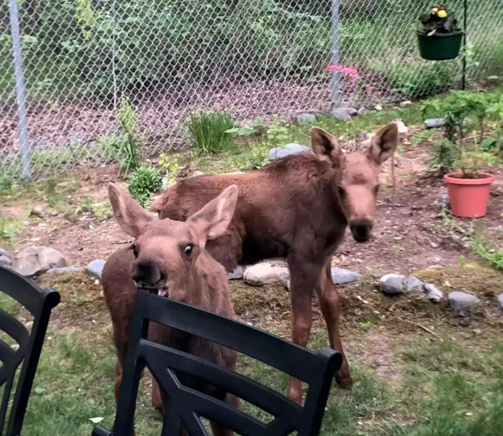 В июне житель Анкориджа (Аляска, США) Роланд Ридстром открыл жалюзи, чтобы впустить в дом утренний свет, и увидел за окном очень любопытное зрелище: на заднем дворе лежали мать-лосиха и ее детеныши.