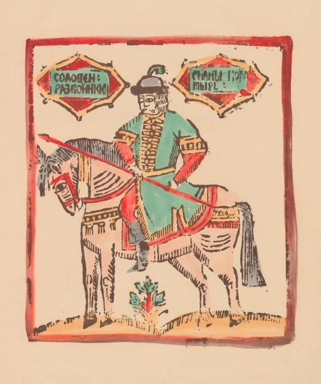 Но в других версиях былин Соловей становится сыном татарина. Его зовут то Ахматович, то Рахматович, то Рахматов. Историки предположили, что с каждым новым военным противостоянием русских с иноземцами Соловей-разбойник принимал на себя черты нового врага. С этим согласуется история образа Соловья-разбойника в русских лубках. В XVII веке его изображают бравым рыцарем на коне в костюме польского шляхтича. А на рисунках XVIII века он уже одет как швед и сражается с русским богатырем, одетым в форму петровского времени.