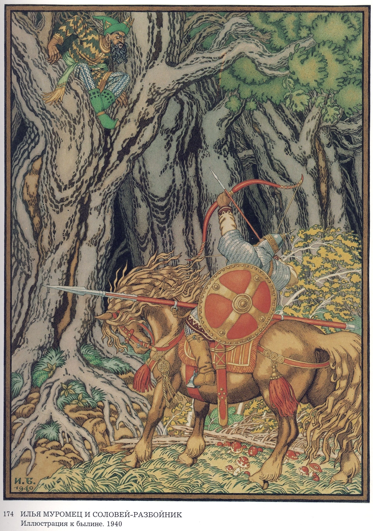 С отчеством Соловья-разбойника все еще интереснее. До нас дошло более ста версий былин о нем с самыми разными отчествами. Чаще всего встречается «Одихмантьев сын». По одной версии, Одихмантий — искаженное Едимант. А Едимантом звали в русских летописях князя Литовского Гедимина. По другой, Одихмантий отсылает к норвежскому конунгу Эймунду, завоевывавшему в XI веке киевский стол для Ярослава Мудрого.