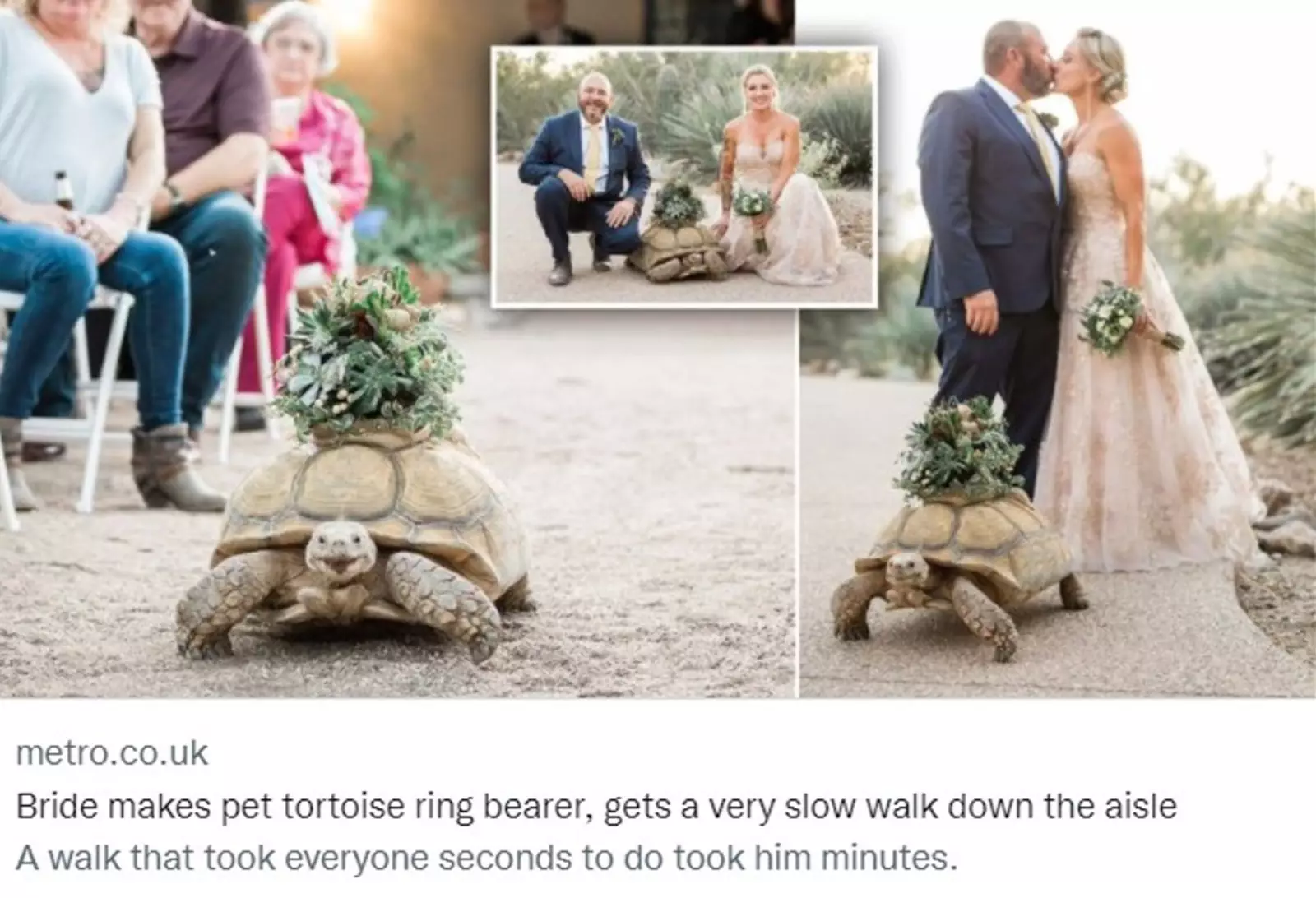 Ветеринары Эрика и Джей Джонсон из Аризоны (США) впервые встретились во время исследования диких черепах 20 лет назад. Именно поэтому они решили, что их домашний любимец — черепаха Том Шеллек должен стать носителем колец на их свадьбе.