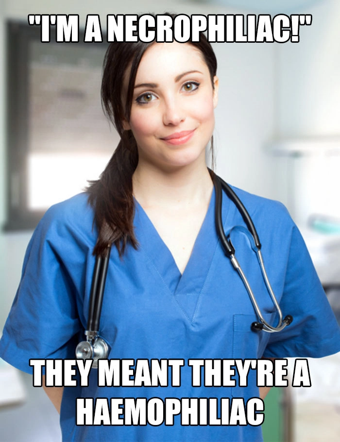 «Когда пациенты говорят, что у них некрофилия, они имеют в виду гемофилию».