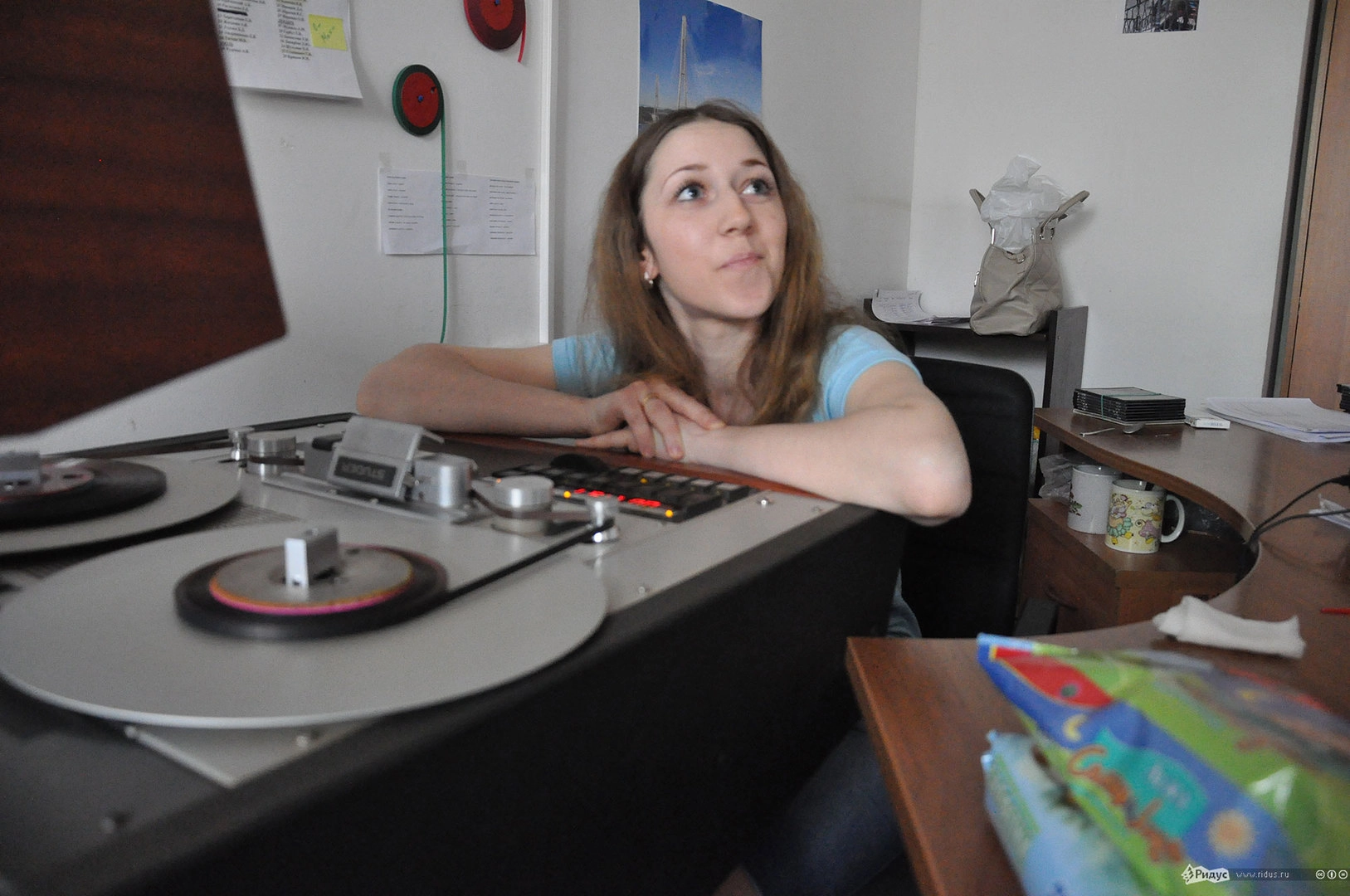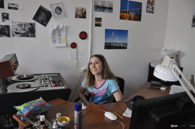 Звукорежиссёр Ирина Новожилова с сосредоточенным лицом полулежит на антикварном магнитофоне фирмы STUDER, слушает какую-то пленку: «Цифра звучит чище, но это оригинальнее, тёплый ламповый звук. Мы все реставрируем вручную, ручками наматываем на бобину, склеиваем специальным скотчем. К каждой пленке свой подход!».