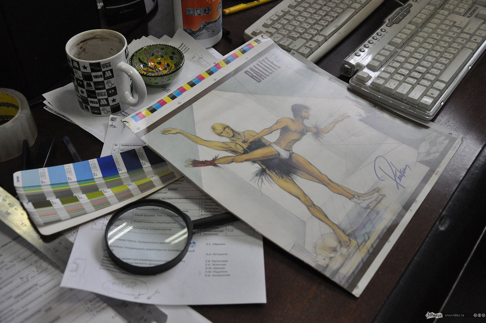Пока звукореж корпит над плёнками, в соседнем отделе стоит дым коромыслом. Художники формируют внешний облик изделия.