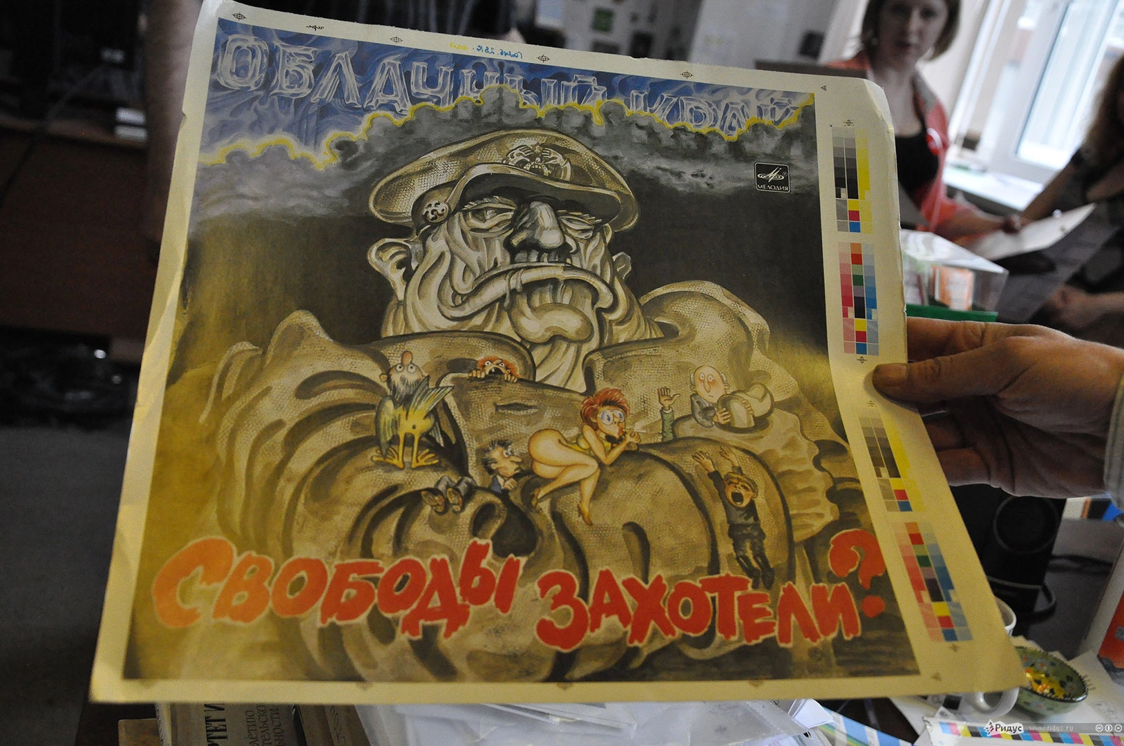 "Благодаря тому, что наработали за 50 лет многие очень известные дизайнеры, у нас потрясающее наследие, - рассказывает начальник художественного отдела Ильдар Крюков. - Несмотря на то, что многие конверты "мелодиевские", которые попадали в руки, казались нам убожеством, есть такие шедевры, от которых волосы дыбом встают. В современной России запрещена некоторая пропаганда, а за железным занавесом вот что могли себе позволить сделать. Разве не прелесть?"