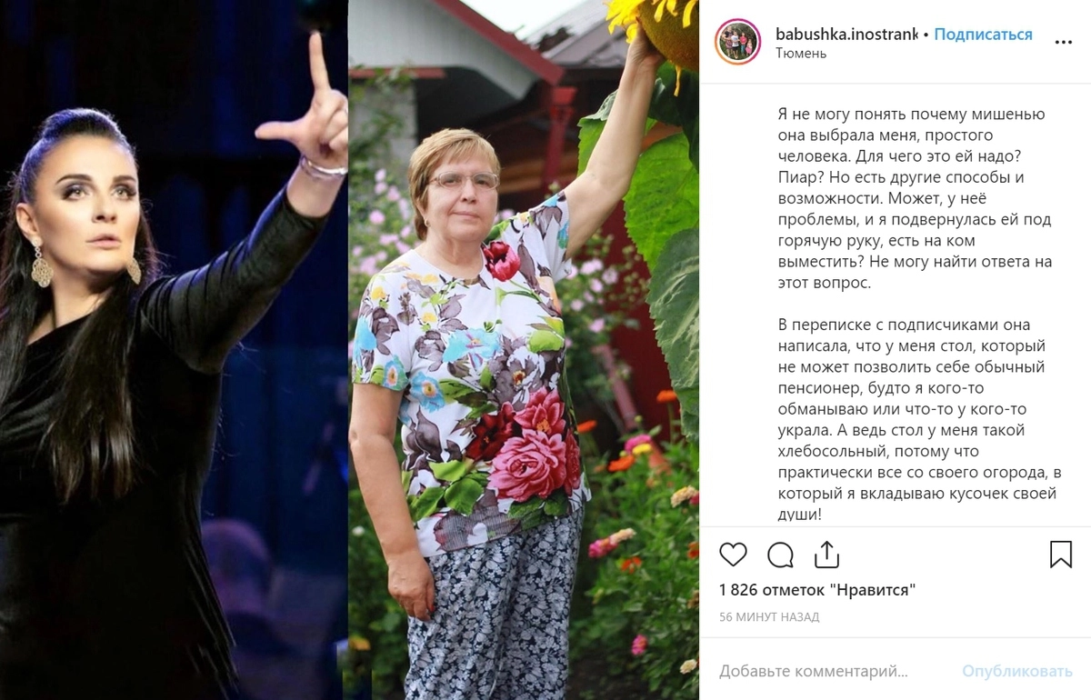 До сих пор не укладывается в голове, чем могла я привлечь внимание знаменитой певицы? Она ведь не успокоилась одним комментарием. Разместила у себя в аккаунте мое фото и стала такие нелестные слова писать! Не буду пересказывать, наверняка все это вы читали, — написала, в частности, Ольга Ивановна.