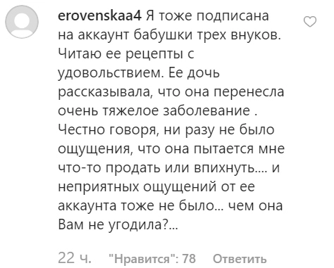 Сейчас комментарии к посту Ваенги о бабушке закрыты, но пользователи Сети все равно делятся своим мнением — в том числе в комментариях к другим постам. Многие из них выражают возмущение и пишут, что не понимают причину столь бурной реакции в адрес жительницы Тюмени. Они заступились за бабушку.
