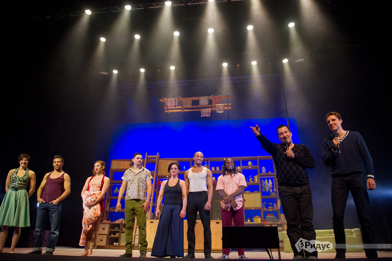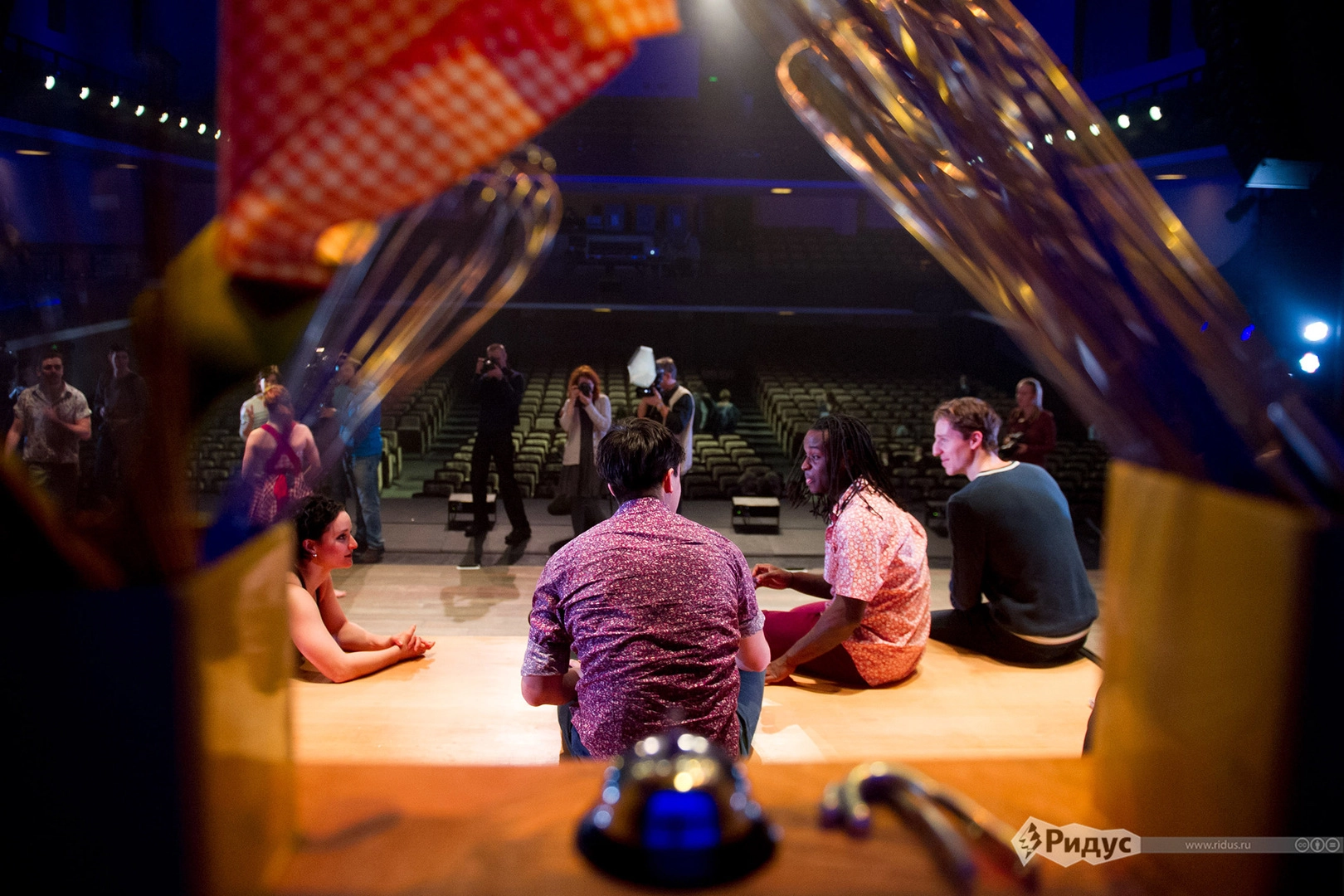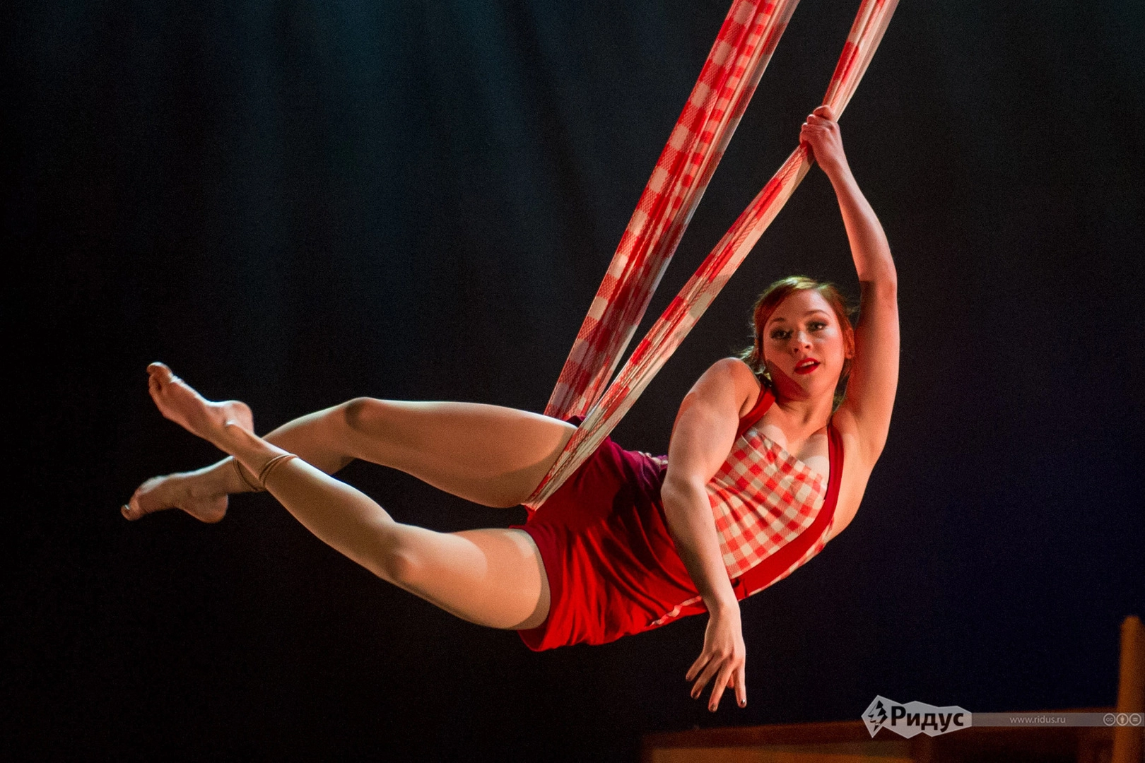 Ощущение — как будто попал на подготовку к празднику в веселой общаге клоунов. Актеры постоянно бегают по сцене, жонглируя кухонной утварью, лишь иногда прерываясь на сольные выступления своих коллег. Один из таких номеров показала Анна Киченко, воздушная акробатка с русскими корнями — тут уже начался настоящий высокий цирк с опасными и захватывающими дух пируэтами.