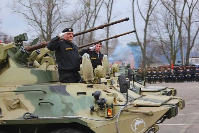 «Настоящий вальс в исполнении БТР-82А под музыку духового оркестра увидели жители Балтийска, где накануне состоялись праздничные мероприятия в честь Дня морской пехоты. Торжества прошли на центральной площади Балтийска и в военной гавани главной военно-морской базы Балтийского флота», — сообщило Минобороны РФ на своей странице в Facebook.