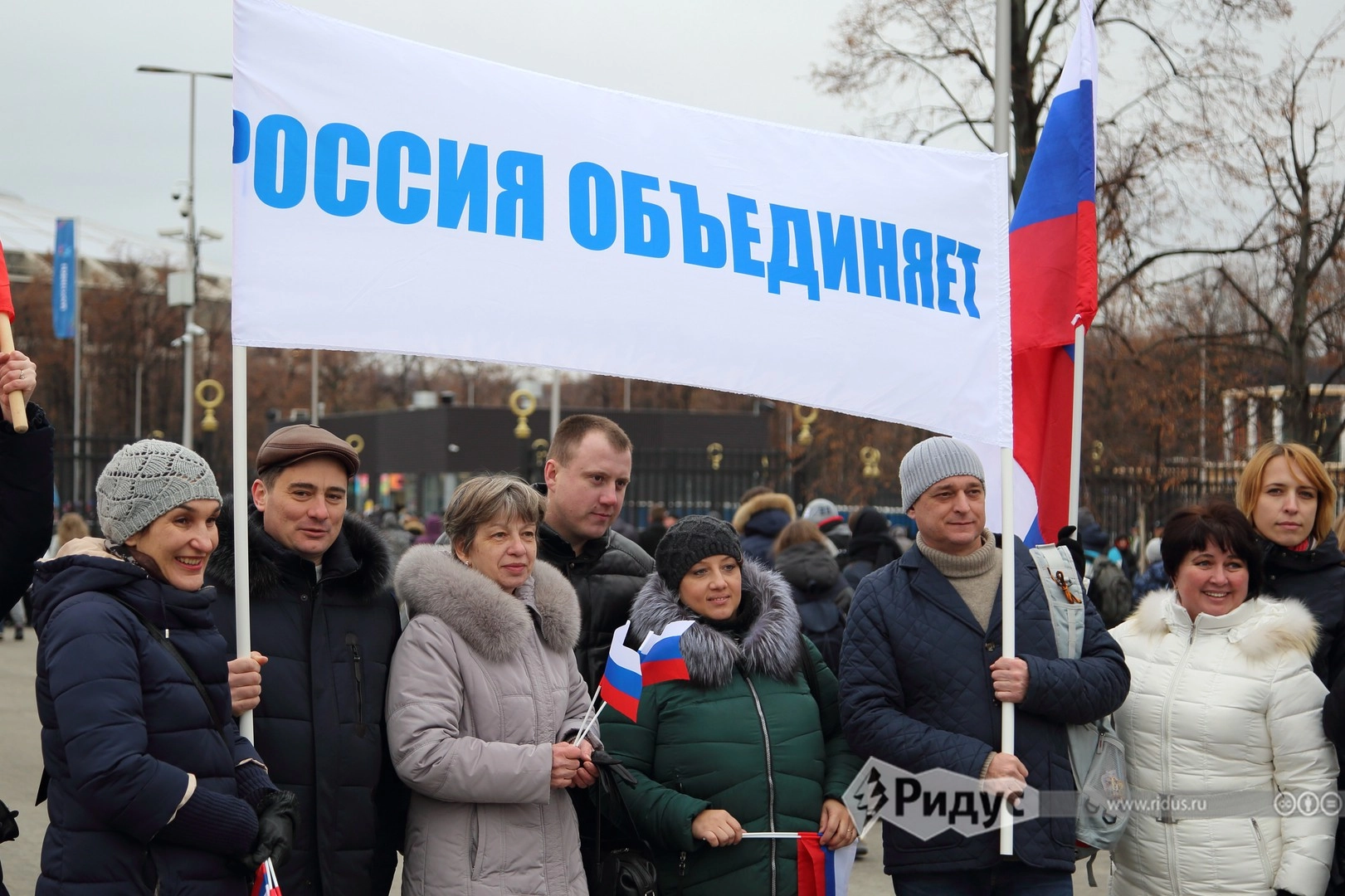 Сотни тысяч москвичей высыпали сегодня на улицы отметить День народного единства. В одних только Лужнкиках в праздничных гуляньях приняли участие 130 тысяч человек. Концерт там начался лишь в два часа дня, однако люди начали там собираться еще до полудня, благо праздничная программа тому способствовала.