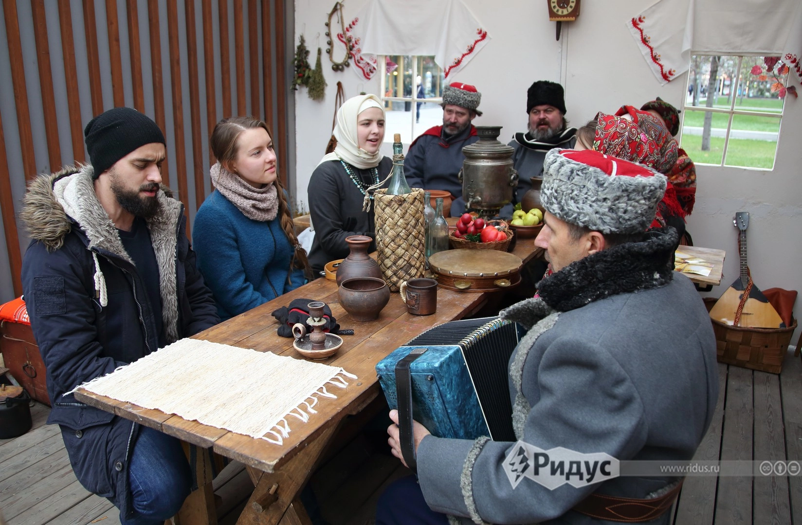 Рядом продавали сувениры, самые оригинальные из которых — народные музыкальные инструменты: якутские и хакасские варганы, алтайские и белорусские окарины, русские гусли. Там же можно ббыло соединить прекрасное с полезным: прикупить к зиме — унты и валенки.