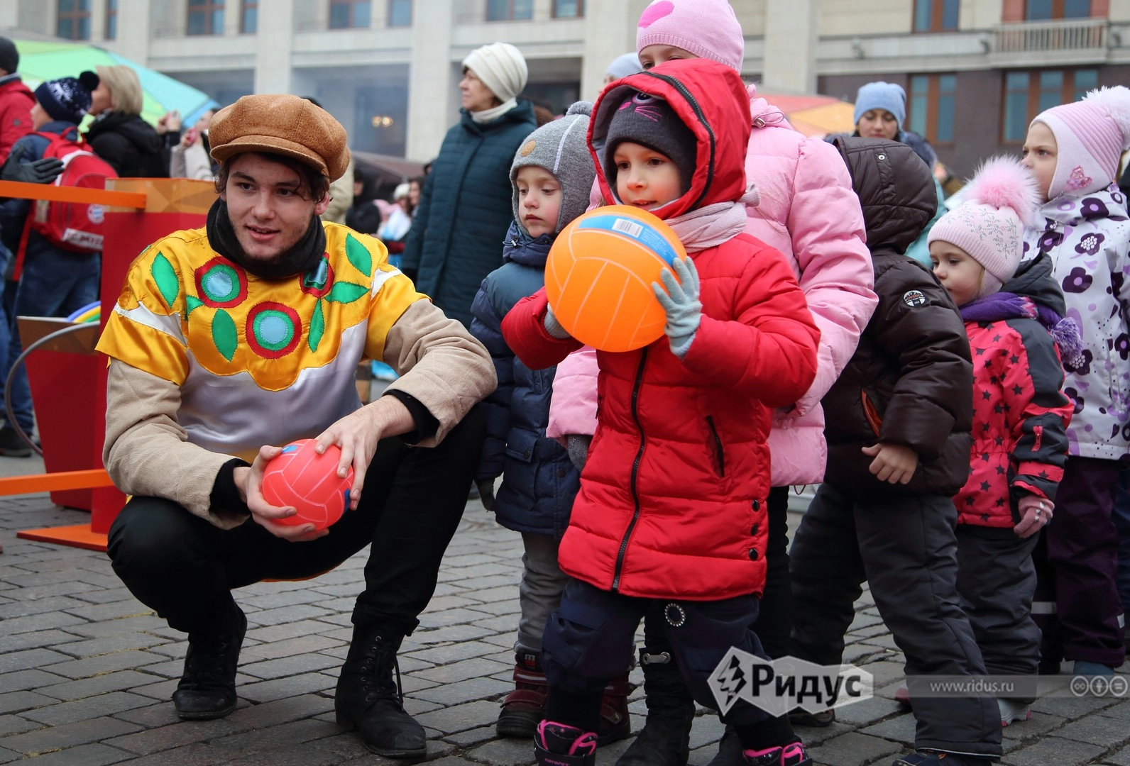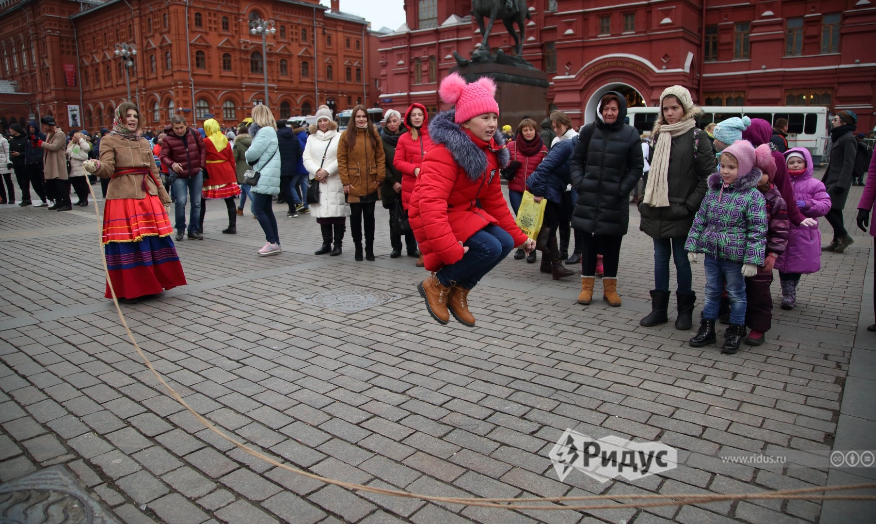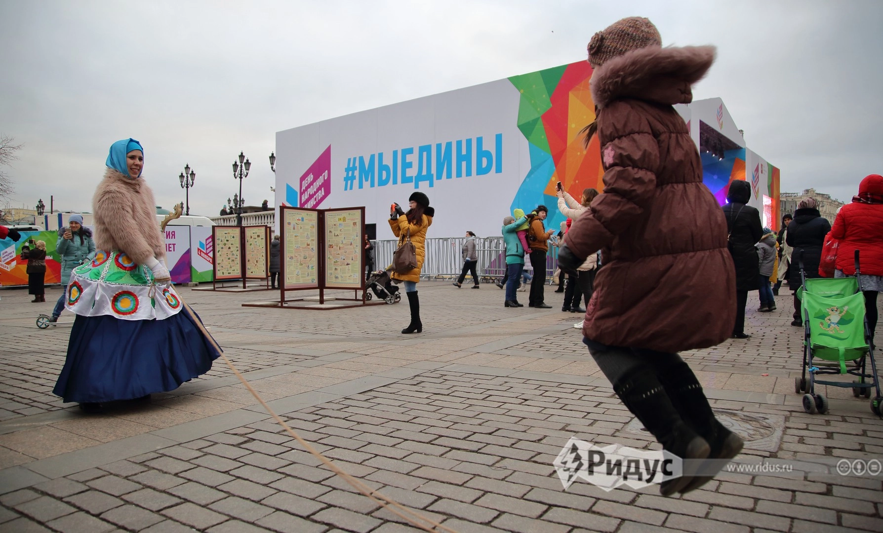 Праздничную площадку на Манежной площади посвятили всем российским регионам сразу. Уличные артисты встречали гостей в национальных костюмах и предлагали поучиться традиционным забавам Краснодарского края, Республики Крым и Карелии, Ивановской, Астраханской, Амурской, Сахалинской и других областей.