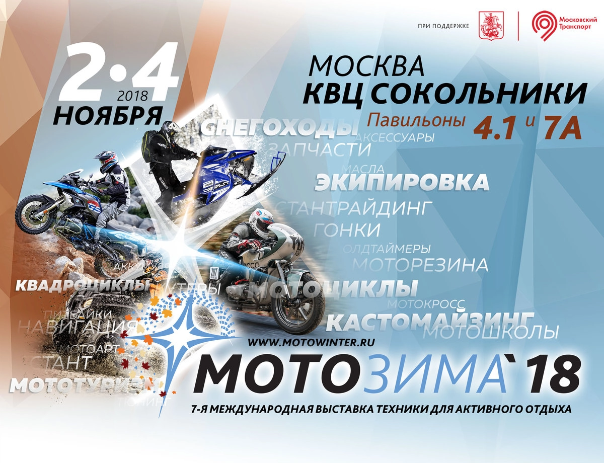 Все подробности о грядущей выставке техники для активного отдыха «Мотозима-2018», а также информация о приобретении билетов на мероприятие доступны на официальной странице «Мотозимы-2018» в Facebook.