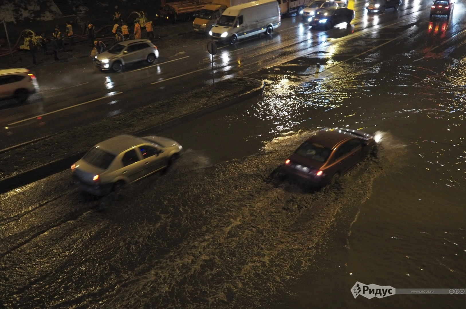 Впрочем, к вечеру, по свидетельству корреспондента «Ридуса», аварийные службы частично справились со стихией. Одна из полос улицы уже осушена, скоро из-под воды будет извлечена вся проезжая часть.