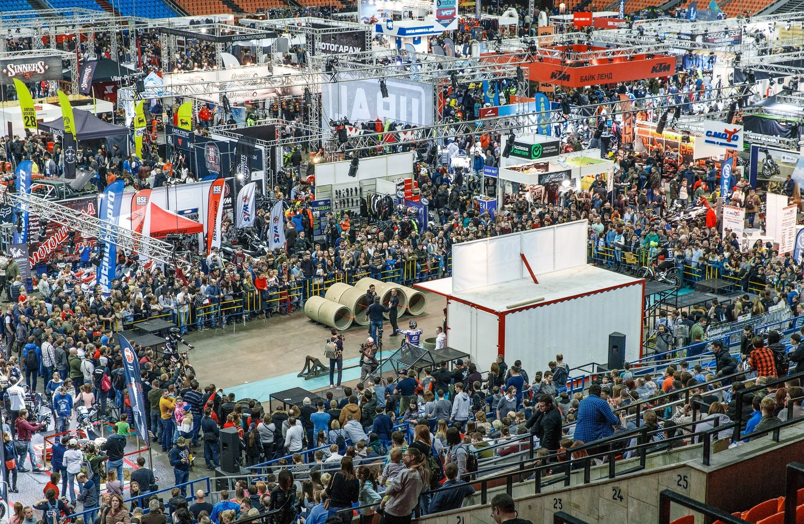 В нынешнем году шестая выставка техники для активного отдыха «Мотовесна-2018» прошла на новом месте — в «Олимпийском». Главное преимущество центральной арены «Олимпийского» — огромное пространство не только на площадке, но и над ней. Этих площадей хватило, чтобы объединить под одной крышей несколько трудносовместимых видов программы. Посетители осматривали экспозицию, смотрели выступления спортсменов-экстремалов, слушали концерты, расслаблялись в кафе, и всё это в одном помещении.