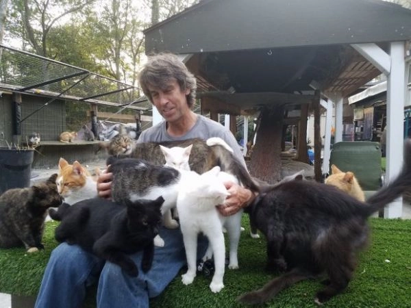 Справиться с таким количеством питомцев Крису помогают волонтёры: «Бывает, что к концу дня я еле стою на ногах. Но я очень люблю своё дело и горжусь. Кошки дали мне смысл и цель в жизни, а за заботу они с лихвой отплачивают мне любовью и лаской».