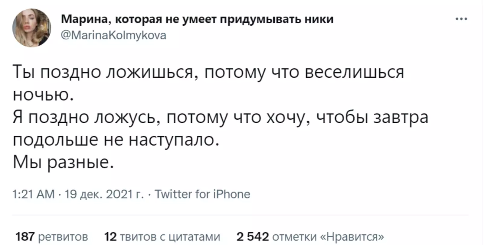 Философские и смешные твиты, объединенные фразой «Мы разные», мы собрали в нашем материале. Уверены, вы точно узнаете себя в некоторых их них.