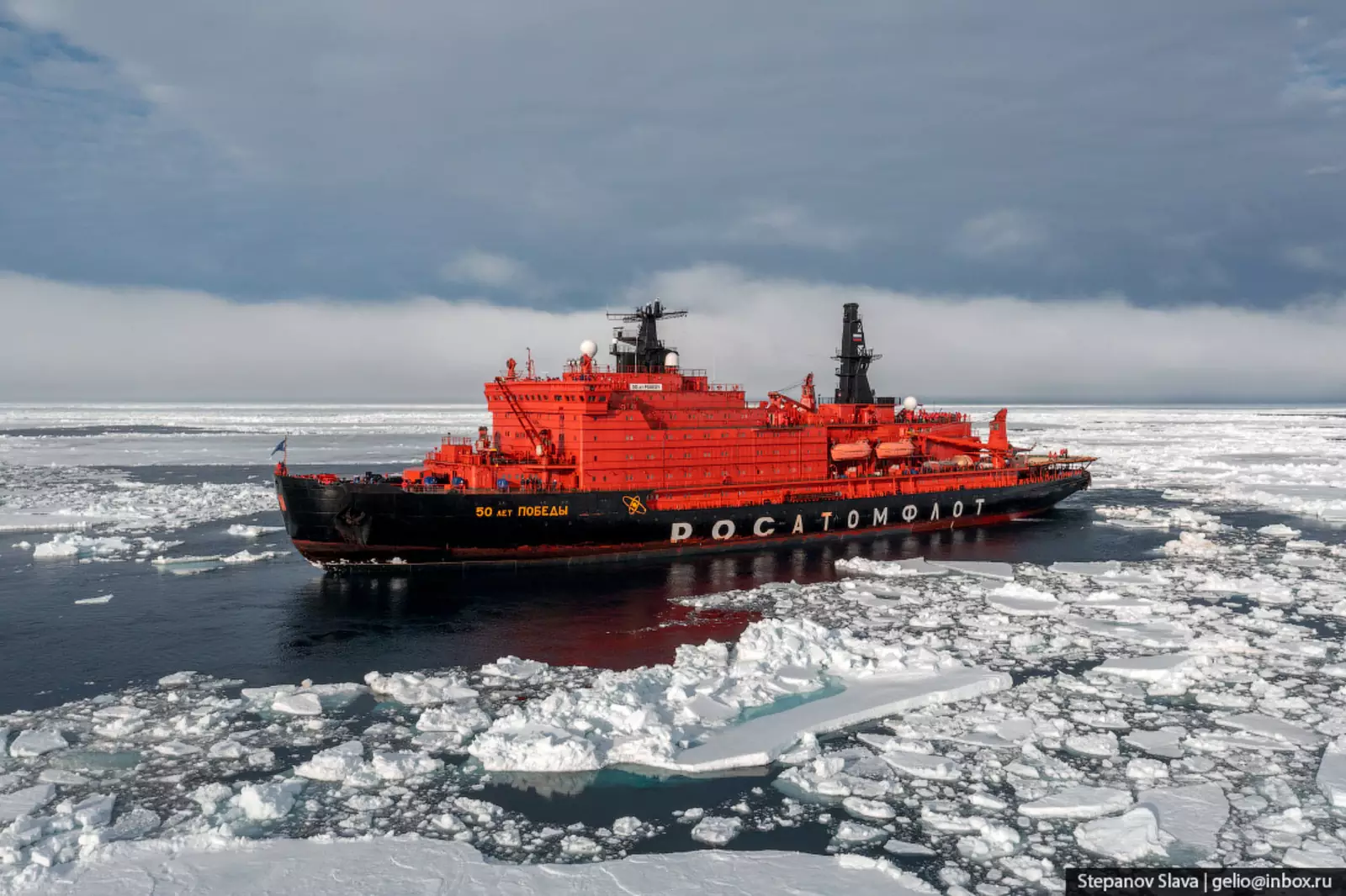20. Ледокол «50 лет Победы» — один из самых больших из существующих арктических атомоходов. Он может идти по льду толщиной до 2,8 метра.