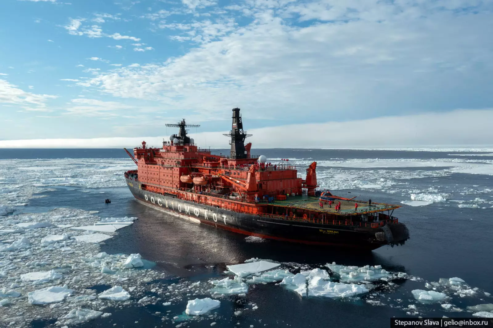 23. Ледокол «50 лет Победы» регулярно совершает рейсы на Северный полюс. Круиз длится 12−13 дней — ледокол стартует из порта Мурманска и проходит через архипелаг Земля Франца-Иосифа. При желании, можно собрать группу и отправиться в такой круиз.