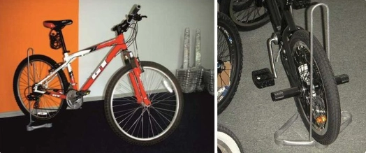 Стойки занимают место на полу, но не дают велосипеду упасть в самый неожиданный момент. Выбирайте на свой вкус — двухэтажные стойки, металлические или деревянные.