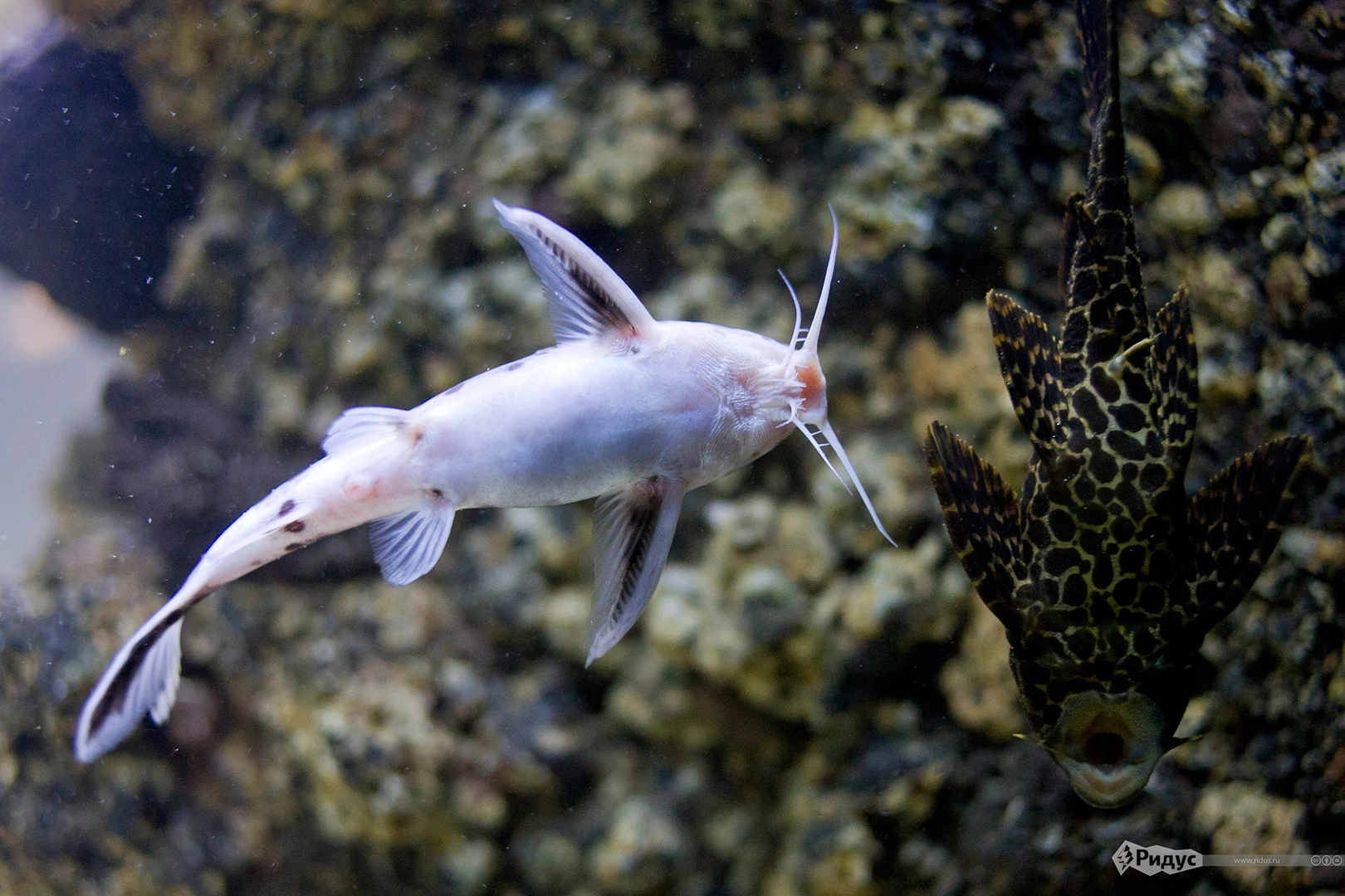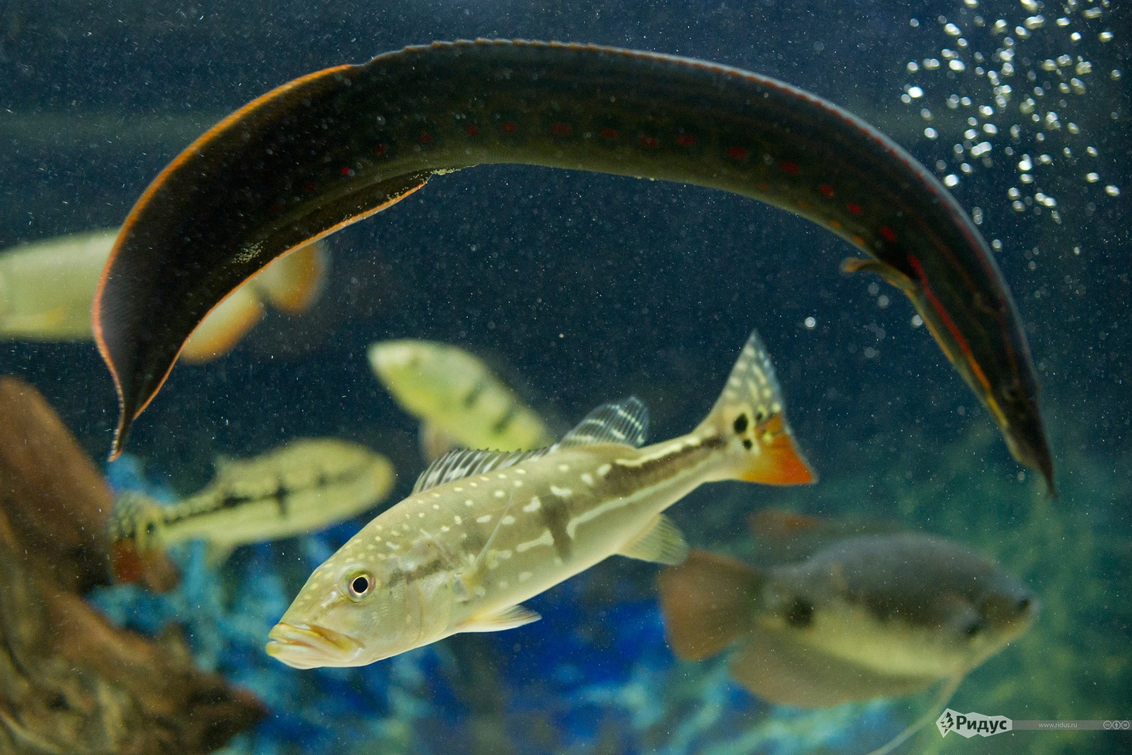 Возле гигантских аквариумов имеются удобные стулья для посетителей, которые желают полюбоваться карпами, карасями, осетрами, сомами, а также поразглядвать таких редких рыб, как, например гигантские травоядные пираньи, полностью прозрачные «стеклянные сомы», «голый карп» и другими.