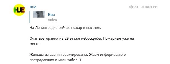 На место выехали экстренные службы. По информации Telegram-канала Hue, возгорание произошло на 29 этаже здания. Из высотки эвакуировали 15 жильцов, включая двух детей. Пострадавших нет.