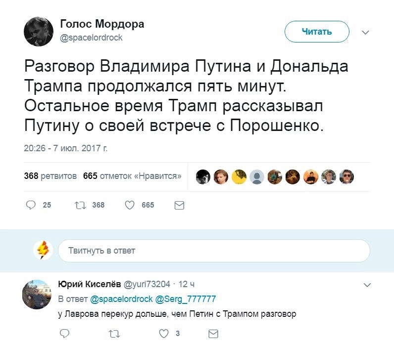 В свою очередь, глава МИД России Сергей Лавров назвал переговоры лидеров двух стран конструктивными. «Действительно, была очень продолжительная и конкретная встреча. Мое ощущение, что подтвердилось, что президенты и российский и американский движимы прежде всего национальными интересами своих стран и понимают эти интересы в том, чтобы искать взаимовыгодные договоренности, а не пытаться разыгрывать конфронтационные сценарии», — заключил министр.