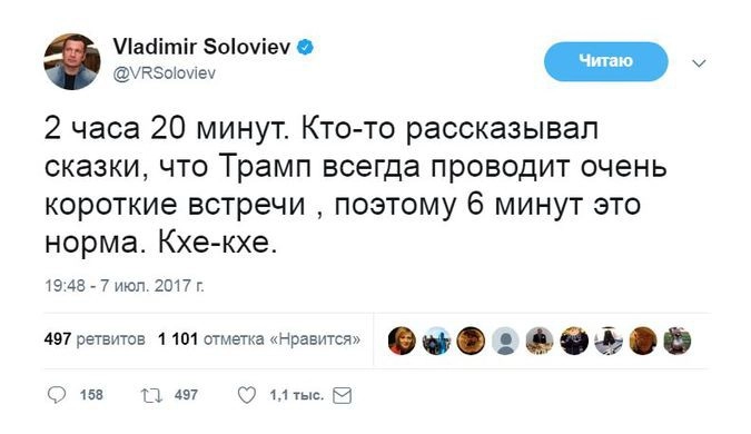 Как сообщал «Ридус», Владимир Путин и Дональд Трамп провели длительные переговоры «на полях» саммита: вместо запланированных 30−45 минут встреча продлилась 2,5 часа.