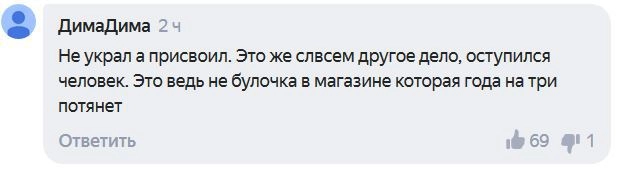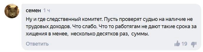Бывшего депутата законодательного собрания Приморья и экс-директора ОАО «Дальневосточная энергетическая компания» Виктора Милуша осудили на 2,5 года за присвоение 700 миллионов рублей. Пользователи Сети считают, что теперь Следственный комитет «должен проверить судью на наличие нетрудовых доходов».