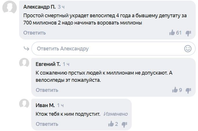 Пользователи Сети считают, что суд своим приговором наградил бывшего депутата за воровство.