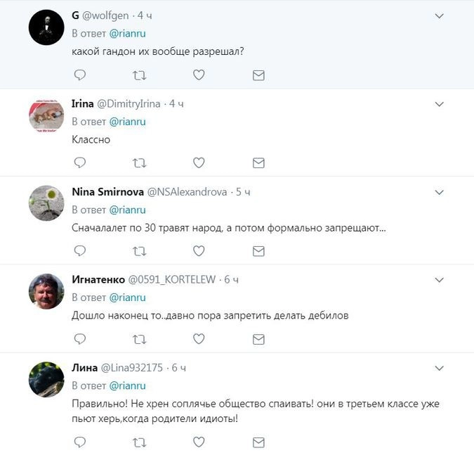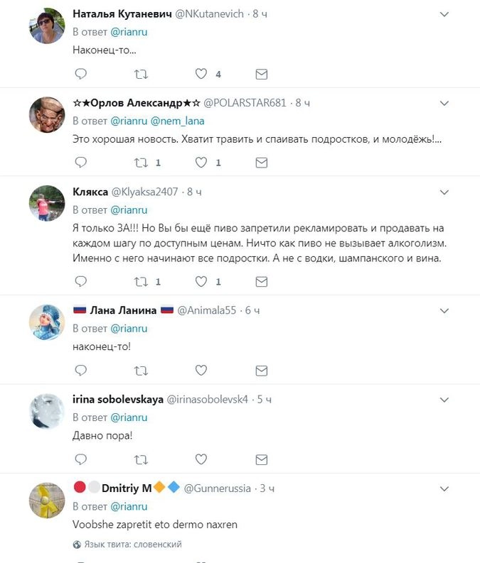 Критически настроенные блогеры отметили, что запрет алкоэнергетиков мера, конечно, хорошая, но за ней должен последовать полный запрет на рекламу пива и спиртосодержащих коктейлей в любой форме, так как именно с употребления таких напитков в большинстве случаев и начинается подростковый алкоголизм.