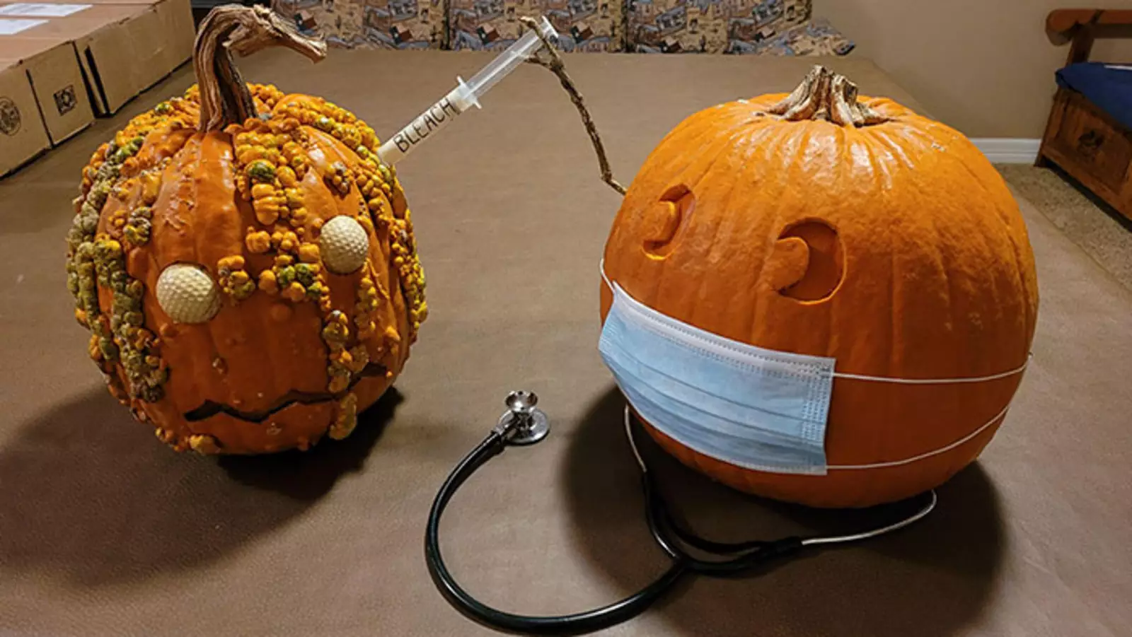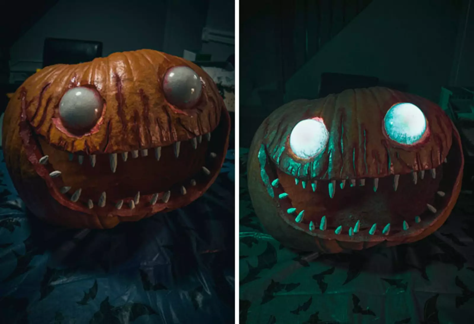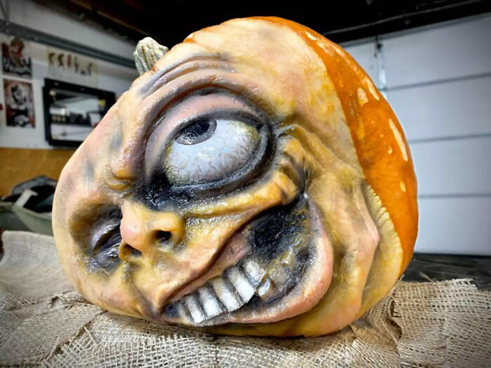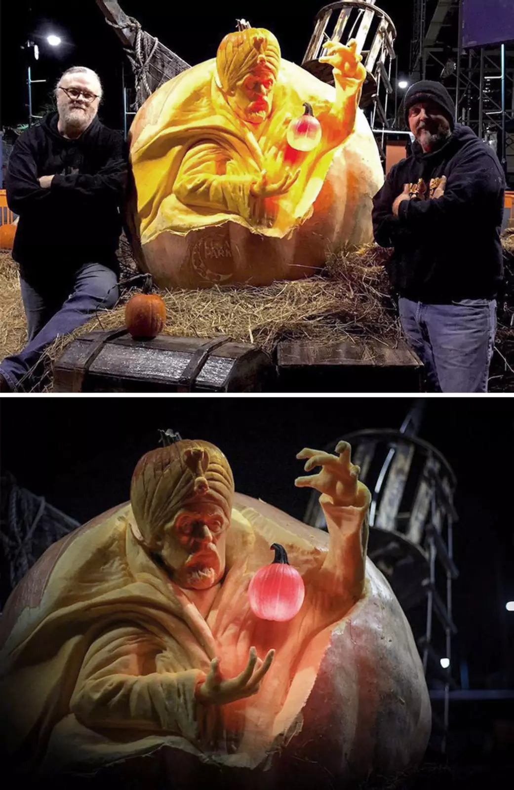 18. Эти тыквы, демонстрирующие расширение, размещены в Королевской больнице Олдхэм, Ланкашир, Англия, в рамках конкурса по украшению тыквы.