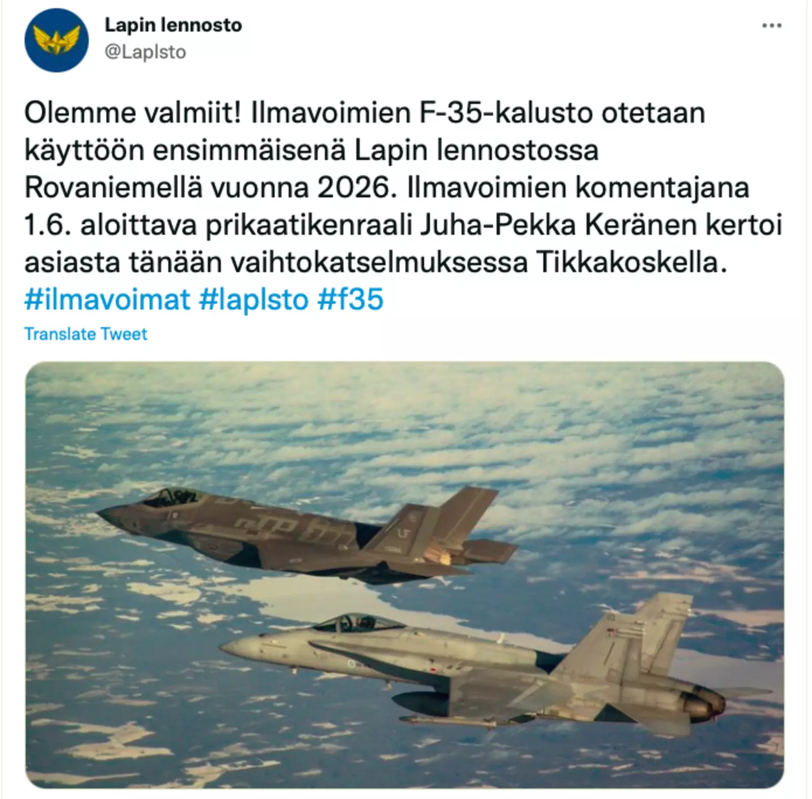 После вступления Финляндии в НАТО альянс будет обладать внушительной группировкой современных истребителей, которая позволит ему контролировать небо северного фланга НАТО. Помимо Финляндии, эти машины уже получила Норвегия, которой поставлено 34 из 52 заказанных самолетов. Часть из них дислоцирована на заполярной авиабазе Эвенес для выполнения функций сил быстрого реагирования (QRA) НАТО.