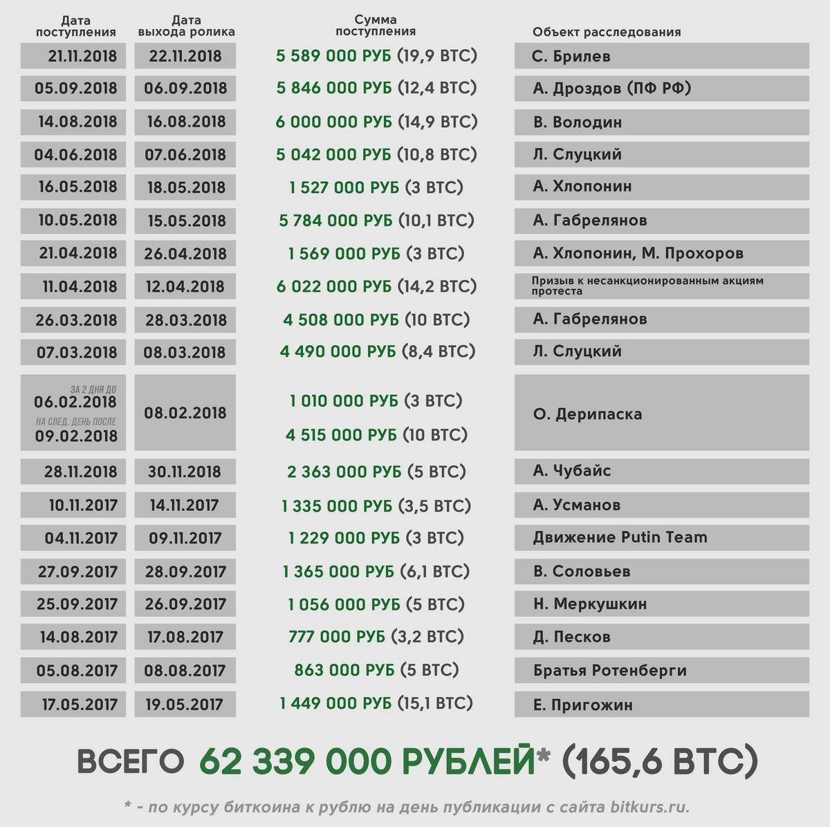 Ранее «Ридус» писал, что поступления миллионов рублей в виде биткоинов на счет Алексея Навального почти всегда совпадают с публикациями расследований в отношении высокопоставленных российских чиновников.