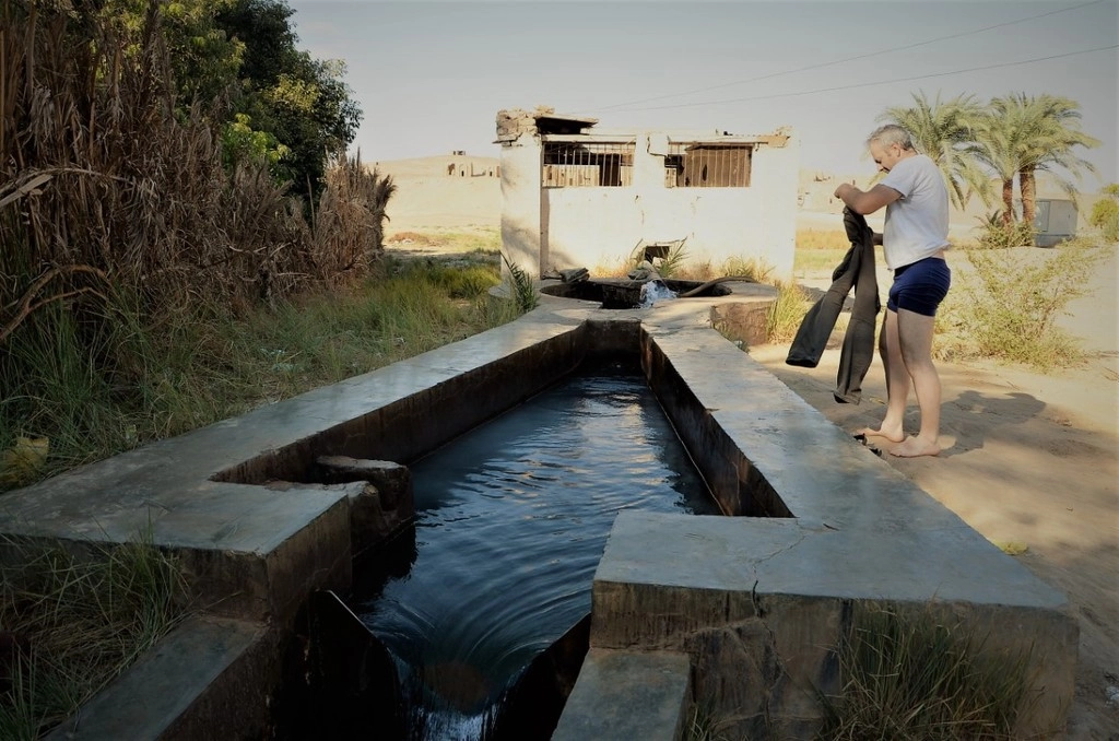 Там же рядом горячие источники, где я уже привычно принимаю легкое омовение перед долгой дорогой через пустыню —
