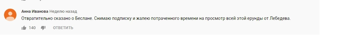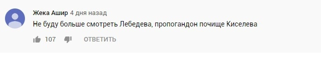 В комментариях под видеороликом Лебедева люди негативно восприняли его мнение на сложившуюся ситуацию, сравнили его с Киселевым и назвали его высказывание продажным.