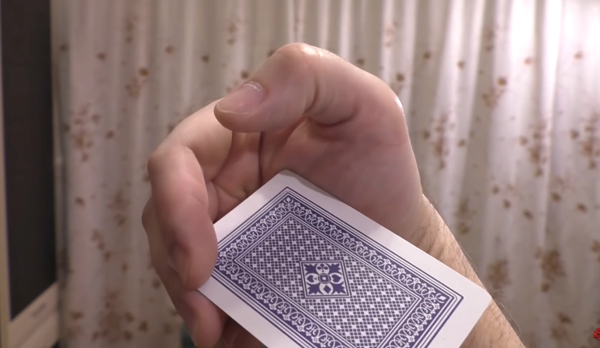 Захватывать карту лучше всего таким образом, как показано на картинке. Зажав карту, вы делаете акцент не на том, как быстро вы откинули руку, а насколько плавно и мягко развернули кисть. Это позволит карте быстрее вращаться, что гарантирует хороший результат. Помните: важна не скорость полета, а скорость вращения карты.