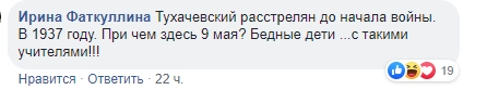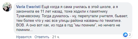 В свою очередь в комментариях учителя попытались оправдаться, заявив, что «Тухачевский — блестящий полководец и стратег» и он внес «огромный вклад в разработку тактики танкового боя». Кроме того, они рассказали, что пятиклассники возложили цветы к ближайшему памятнику.