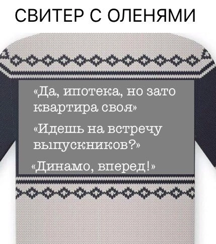 В Сети быстро стала популярной картинка с неуклюжей парковкой. Интернет-пользователи с удовольствием репостили свитер с припарковавшимся «оленем» себе на странички, а потом стали придумывать свои варианты новогодних свитеров.