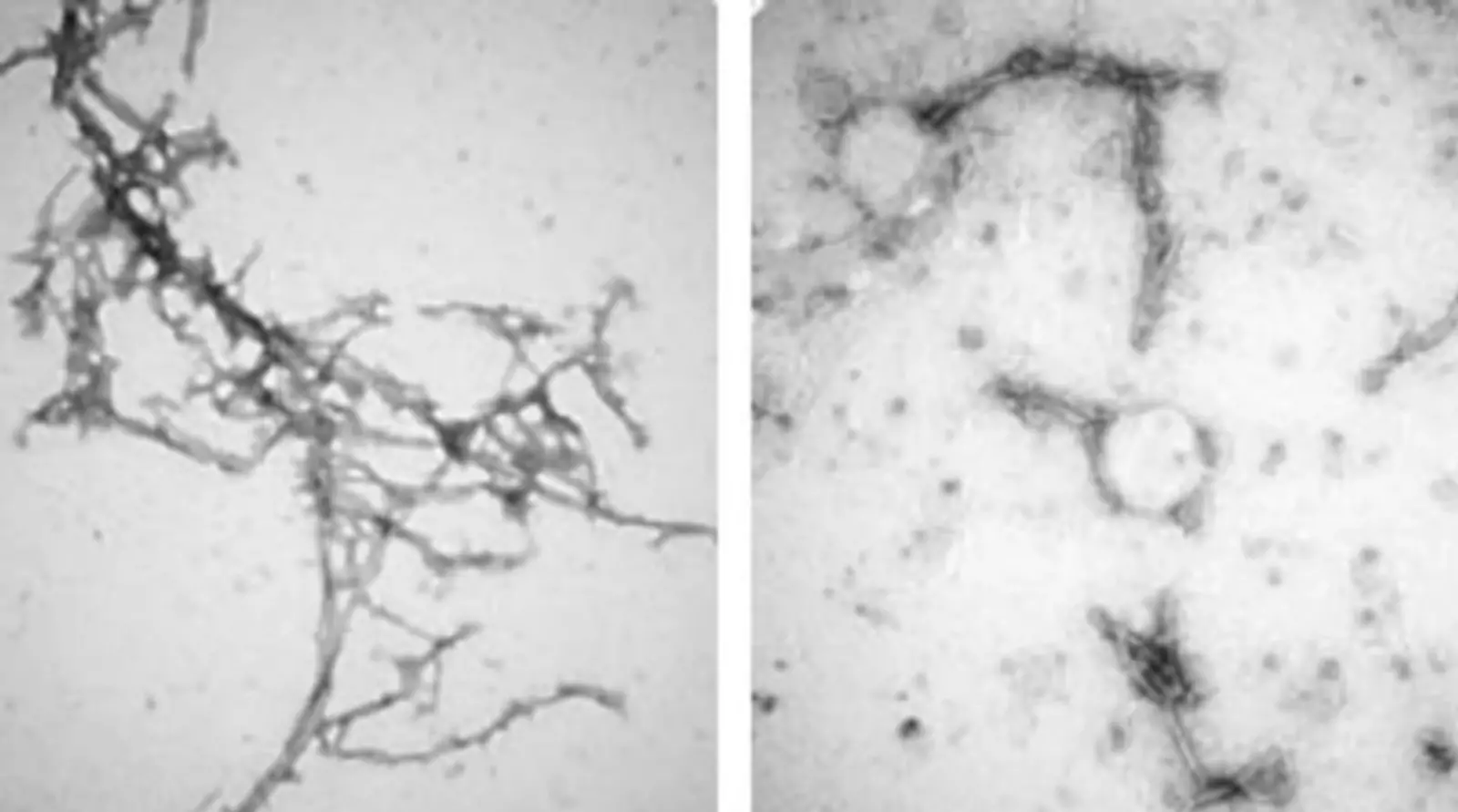 Слева: скопления альфа-синуклеина. Справа: эти же скопления после обработки новым нанотелом.