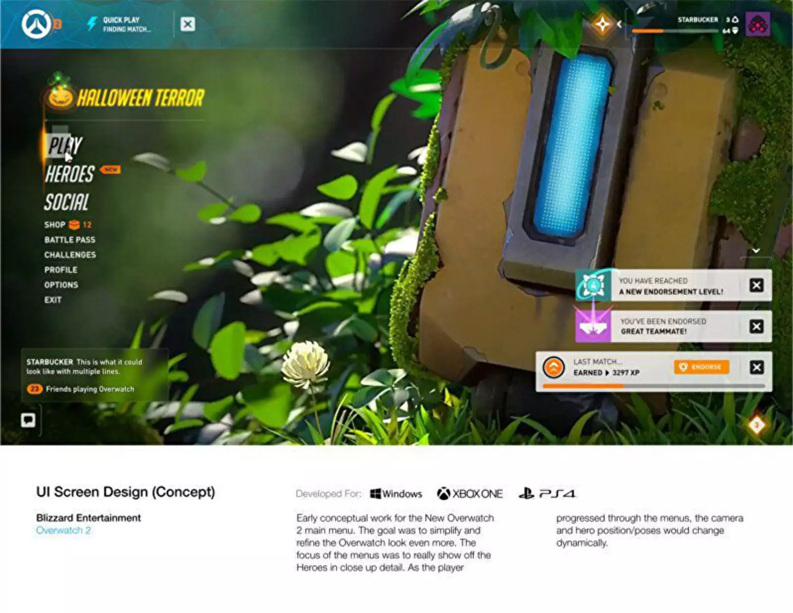 Концепция главного меню игры, разработанная старшим художником пользовательского интерфейса Джейсоном Кирби, появилась в сети через Artstation.